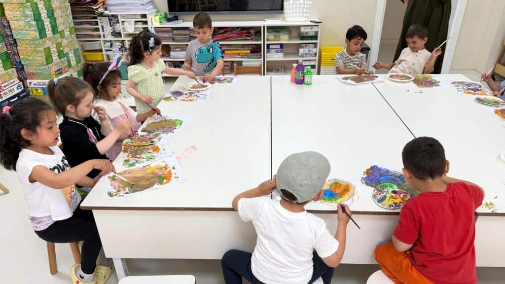 Görsel Sanatlar kursumuzda miniklerimiz ana renklerin karışımından elde edilen diğer renklerin nasıl üretildiğini öğrendiler.