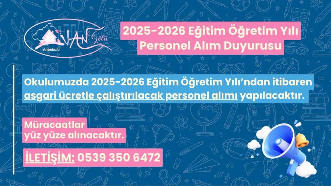 Okulumuzda 2025-2026 Eğitim Öğretim Yılı’ndan itibaren asgari ücretle çalıştırılacak personel alımı yapılacaktır.